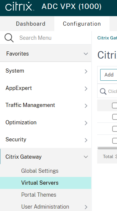 Click on Add to add a new Citrix Gateway: