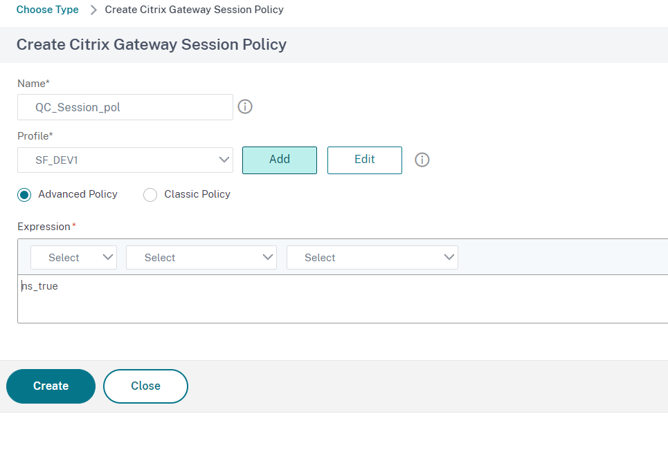 Click on Create to finish creating the session policy, then one more time on Create, then Bind and Done.