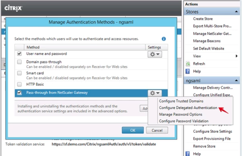 Use this procedure on Citrix StoreFront to enable \'Pass-through from NetScaler Gateway\'.