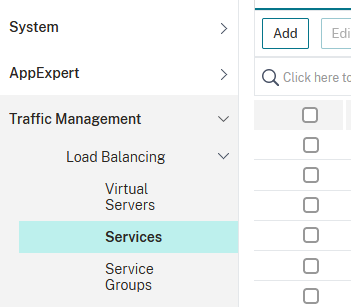 Go to Traffic Management → Load Balancing → Services and click on Add: