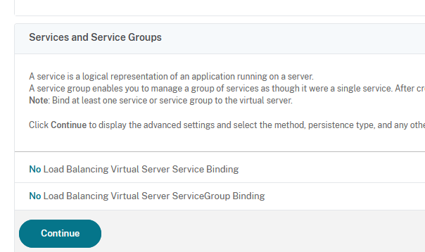 In the next window click on No Load Balancing Virtual Server Service Binding: