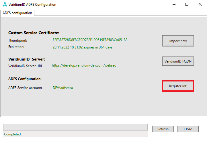 Click "VeridumId FQDN" button.