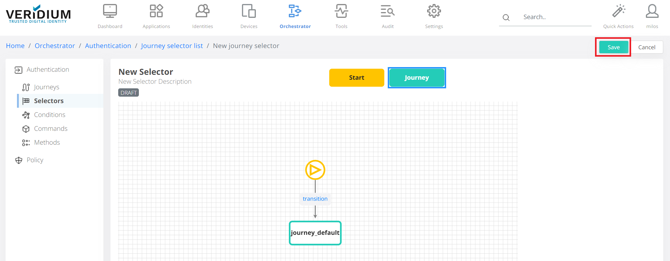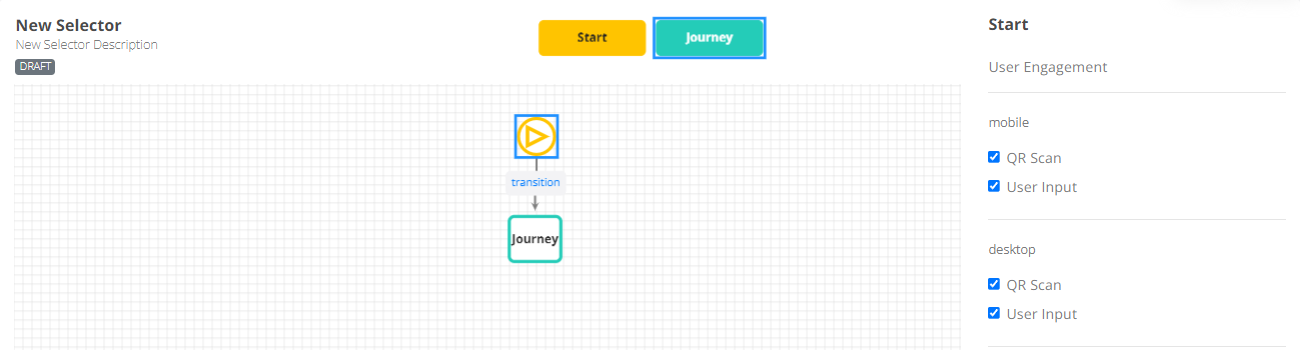 Edit the selector’s properties in the configuration pane that contains the name, description and status displayed on the top-left side.