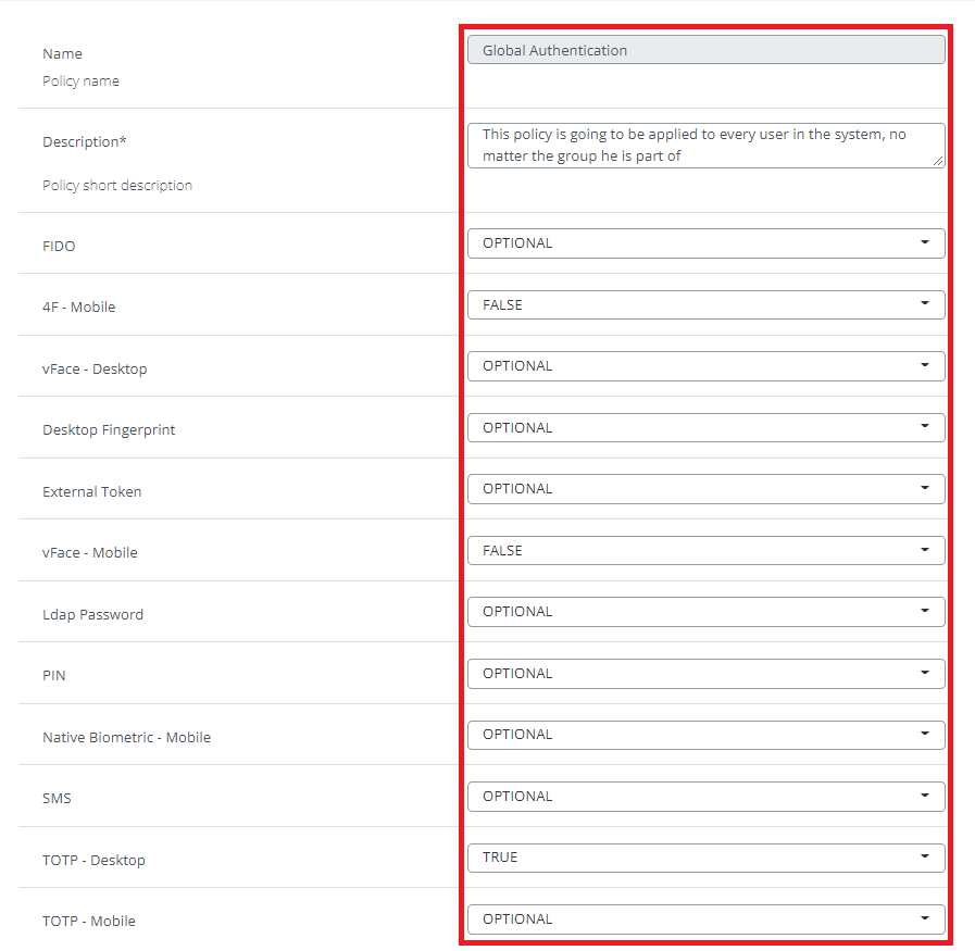 Global authentication policy