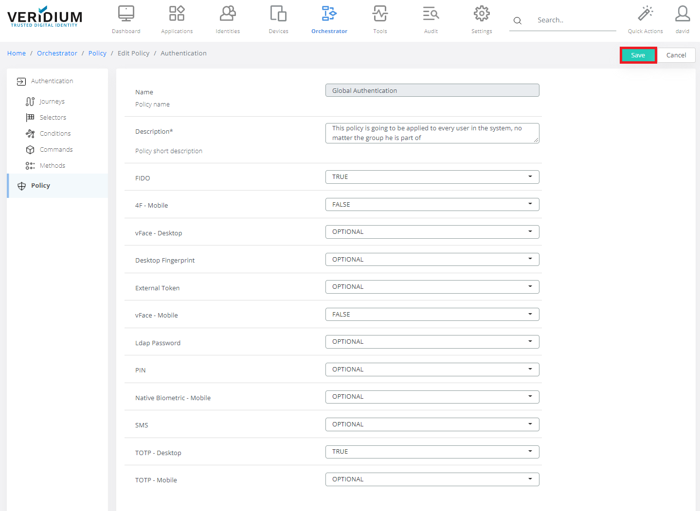 In Veridium Manager, click Orchestrator on top navigation. The list of existing journeys is displayed.