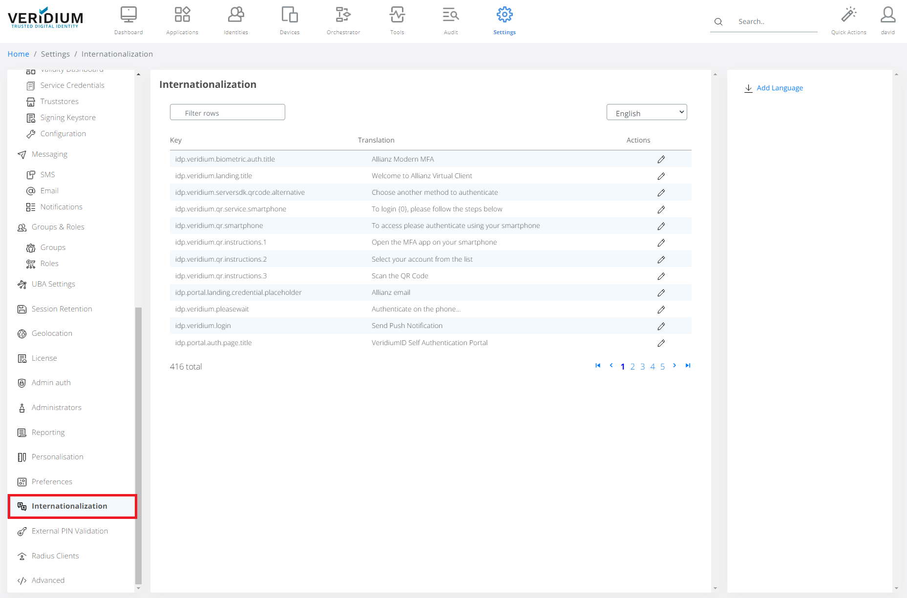 Internationalization is a set of strings used to define strings used in different Veridium front-ends in different languages.