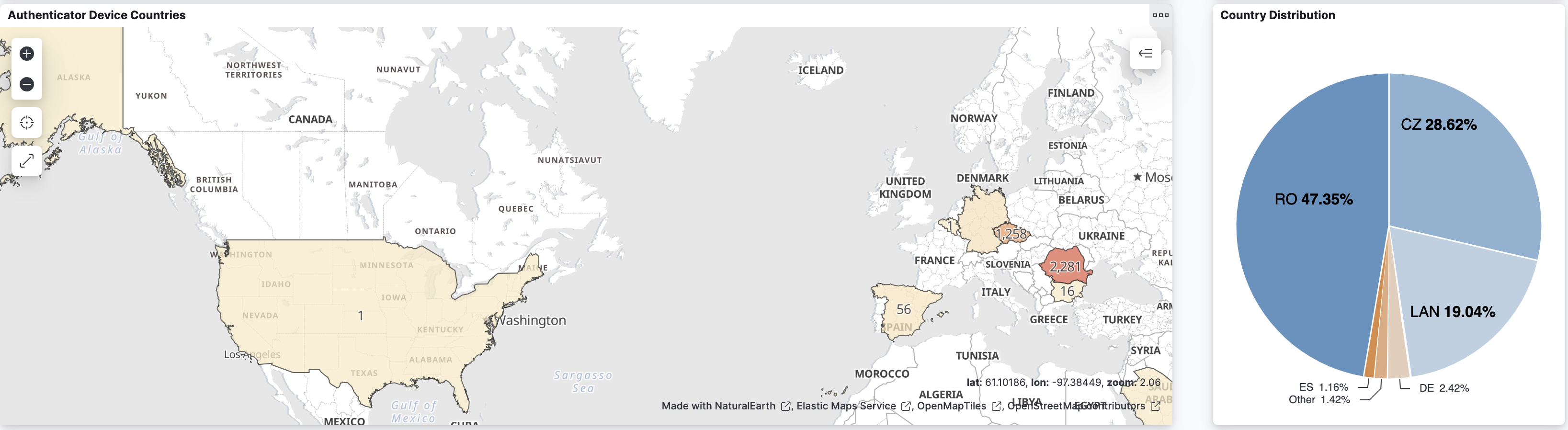 Authentication Method distribution is a pie chart which shows a overview of how many authentication sessions were created using each combination of authentication methods.