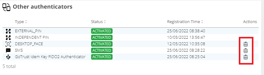 They can be deleted (unregistered) by pressing a recycle bin icon on right side.