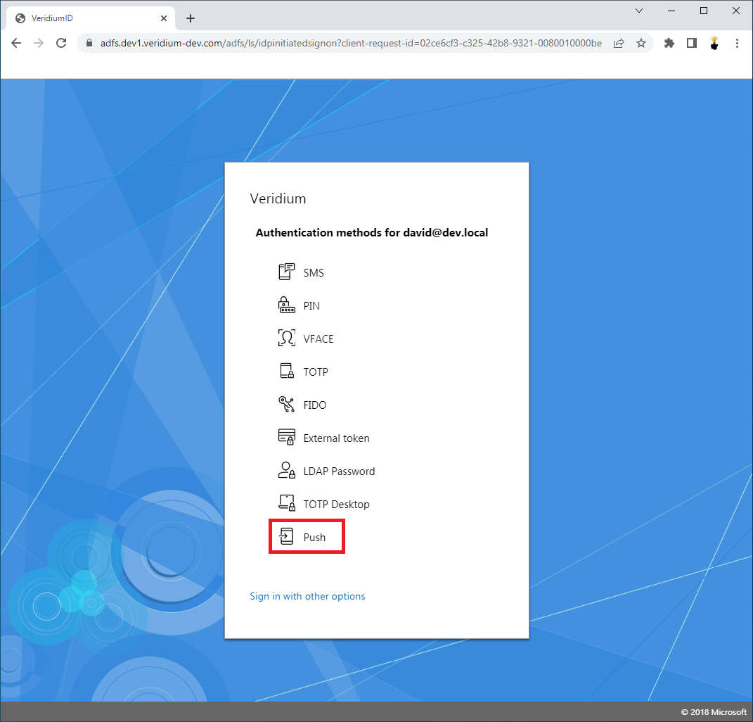 Click on the PUSH authentication method.
