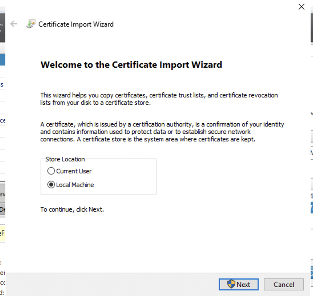 Import new Certificate