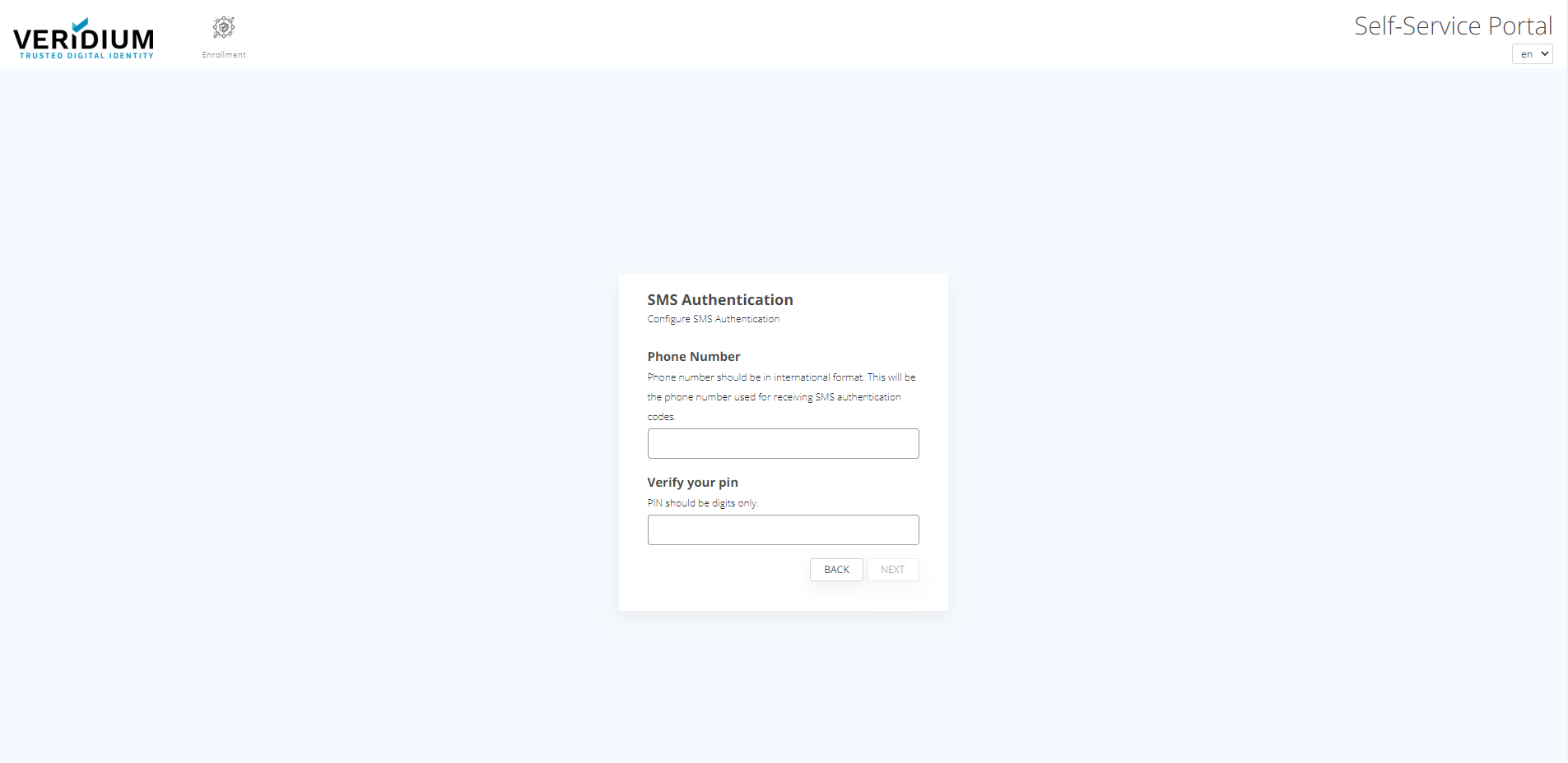Go to VeridiumID Self-enrollment and click on "SMS".