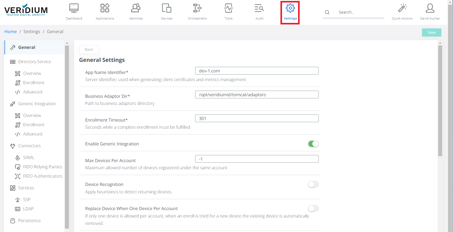 New configuration options are available in Veridium Manager - General - Administrators Settings submenu settings: