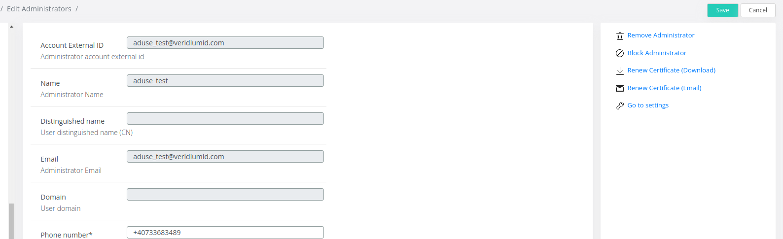 Double click on every Administrator in the list (except for the Default Administrator created earlier) and click on Renew Certificate Download/Email depending on the existing configurations.
