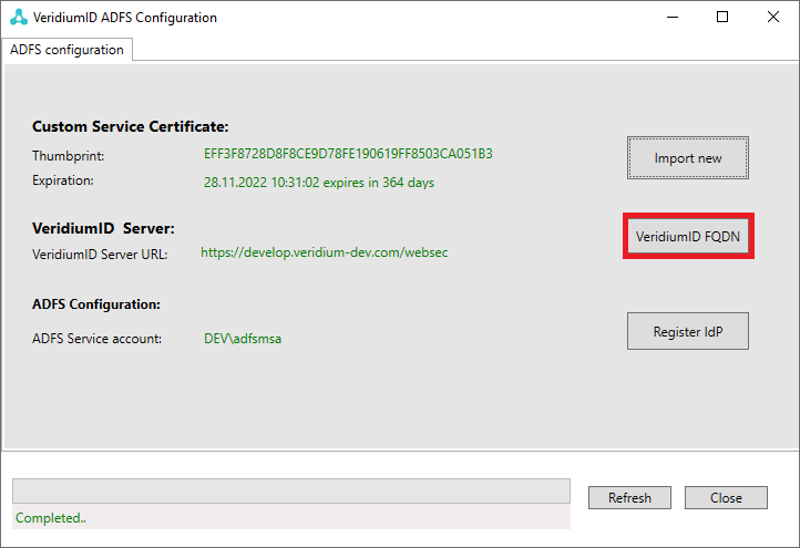 Click "VeridumId FQDN" button.