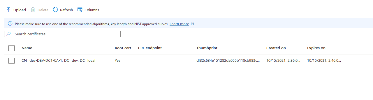 DeviceCertificateValidity : [ 2023-11-23 14:00:57.000 UTC -- 2033-11-23 14:30:57.000 UTC ]