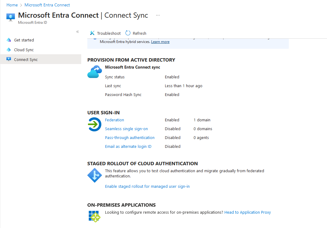 Login to entra.microsoft.com and, in the lef menu, click on Hybrid management->Microsoft Entra Connect: