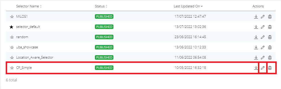 Click Selectors on the left-side navigation. The list of existing selectors is displayed.