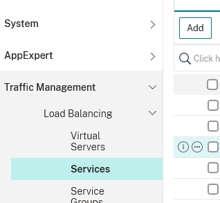 Go to Traffic Management → Load Balancing → Services and click on Add: