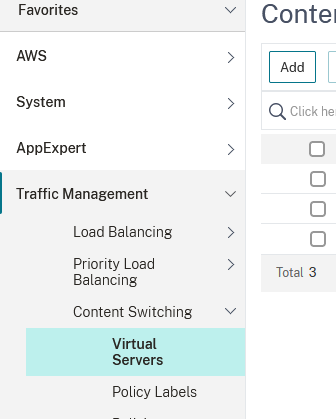 Go to Traffic Management → Content Switching-> Virtual Servers and click on Add: