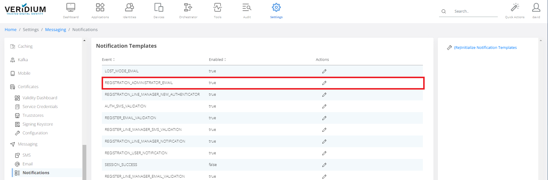 Using the “(Re)Initialize Notification Templates” will revert all custom modifications done for the templates.