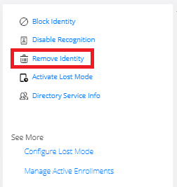 To remove identity means to delete it and restricting the access for authentication. Once identity is removed, user has to do onboard again to be allowed to use Veridium authentication again.