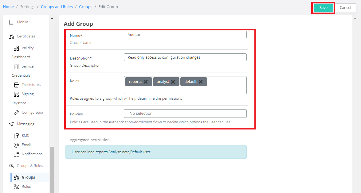 Click Save button on top right corner to create a group.