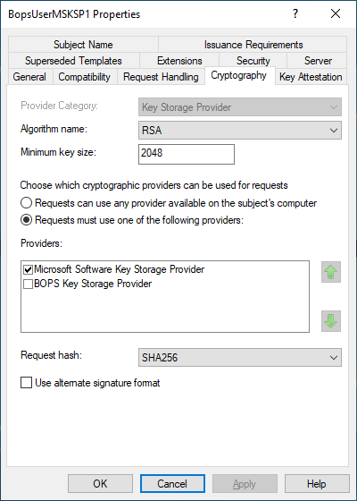 Select the BopsUserMSKSP template from the list and click OK.