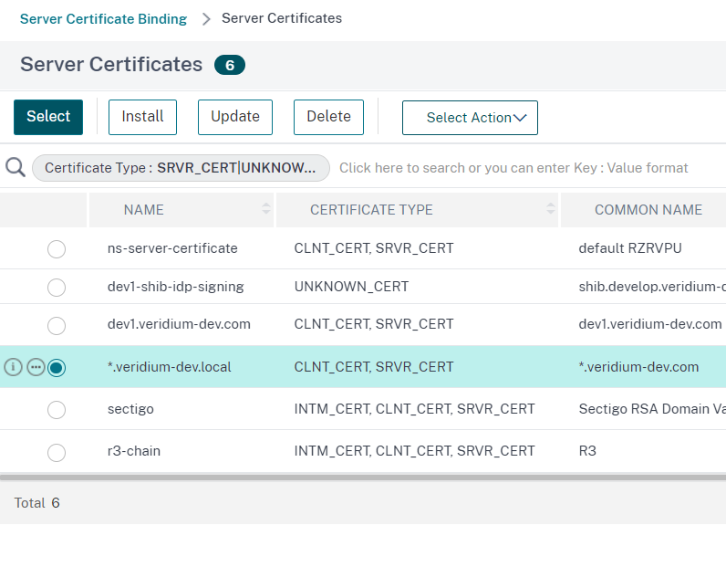 Tick the wildcard certificate (*.veridium-dev.com in this case), then click on Select: