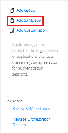 Click Add SAML app on the right-side container.