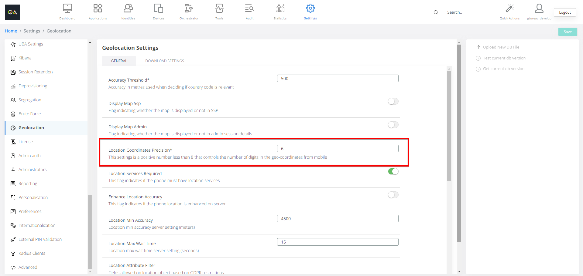 The precision of the GPS location can be configured in Settings → Geolocation → Location Coordinates Precision