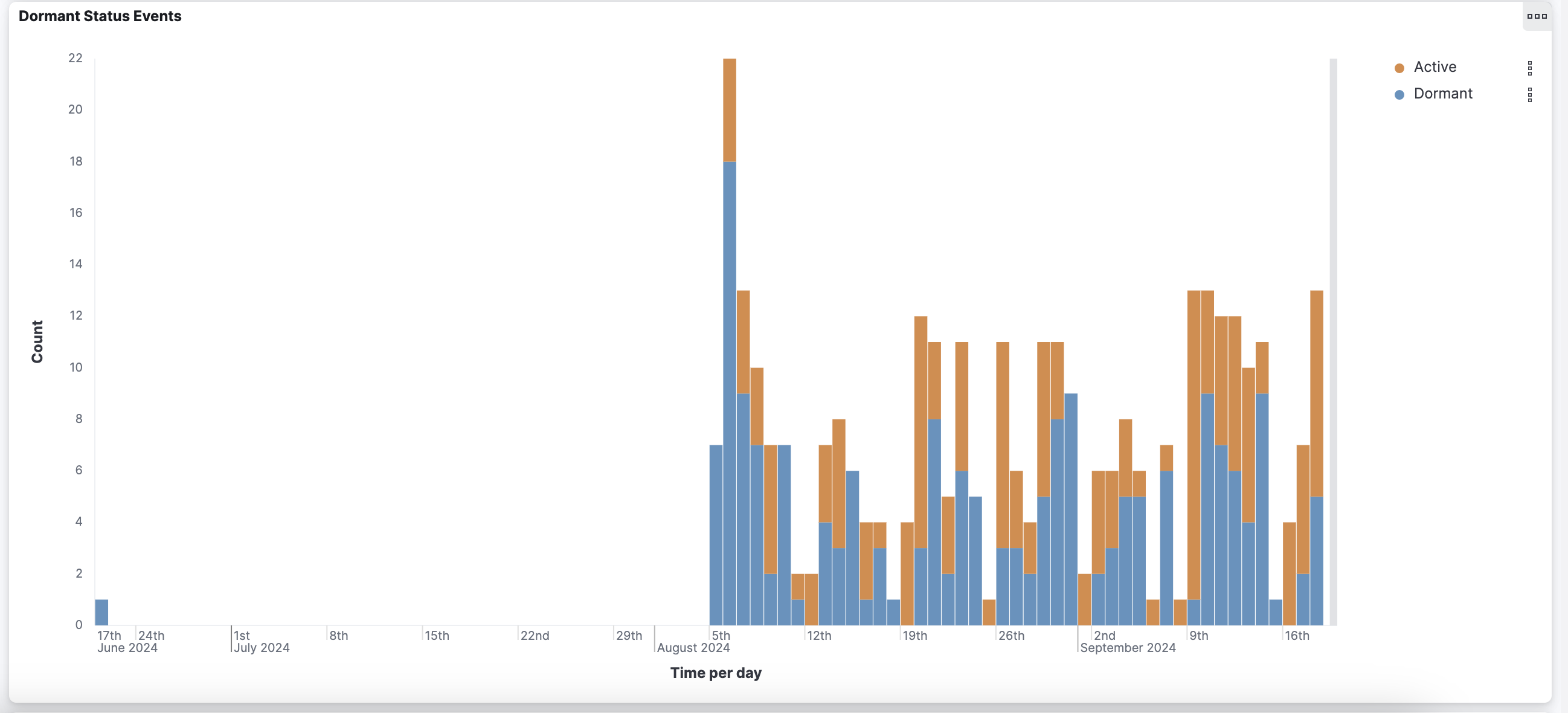 This chart presents the count of events where a phone device was marked as dormant from an active state, and viceversa.