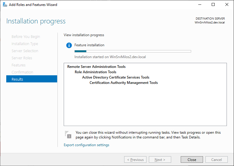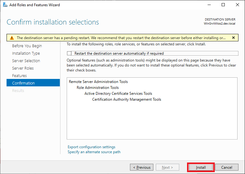On RA server, Install CA management tools: (Domain admin permissions are required for steps 14-16 )