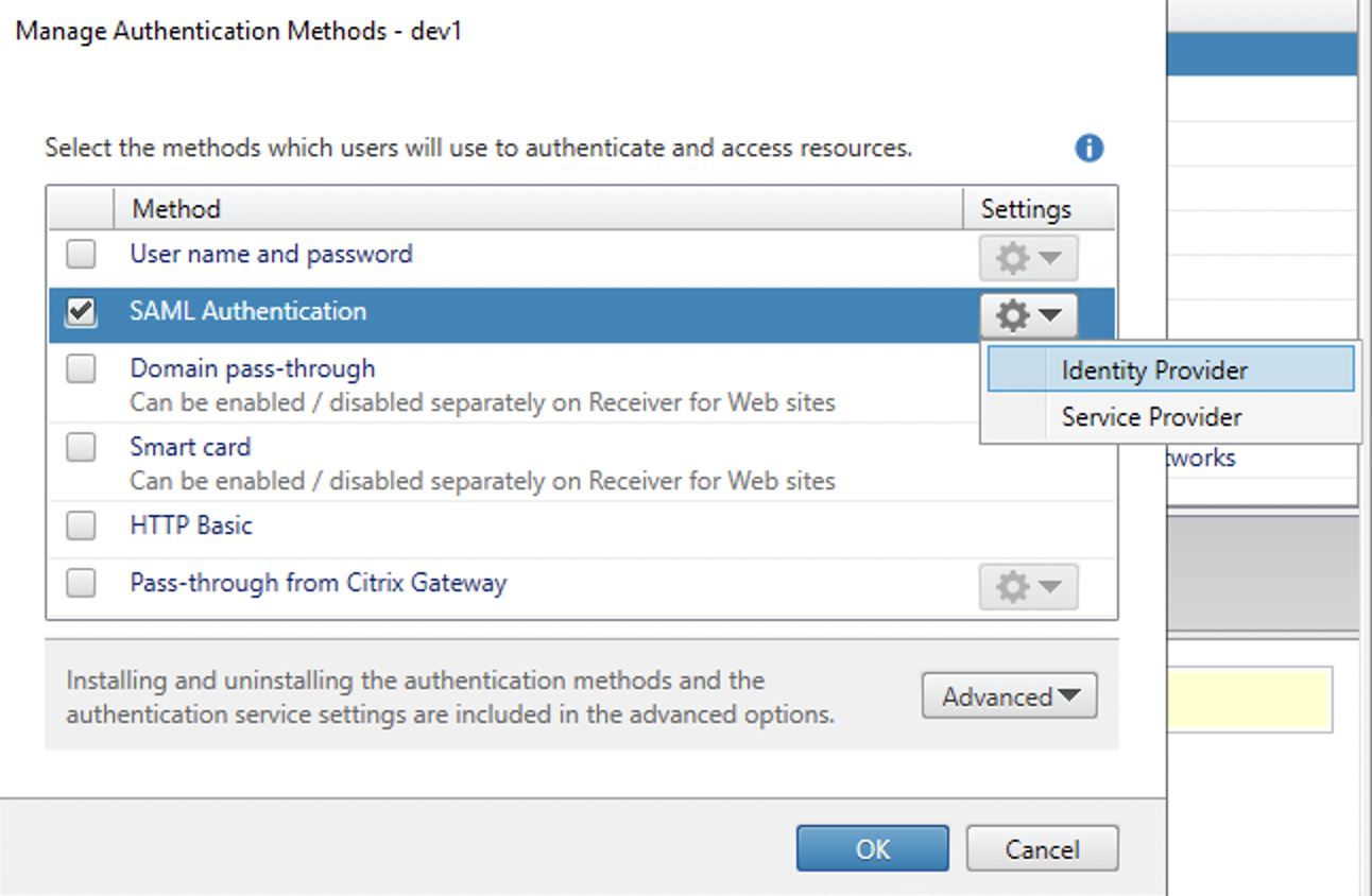 Edit Identity Provider of the Citrix StoreFront