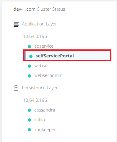 Monitoring details are available by accessing Application Layer/ selfServicePortal.