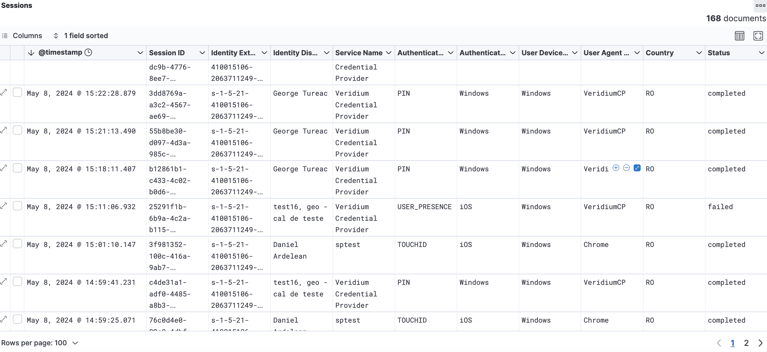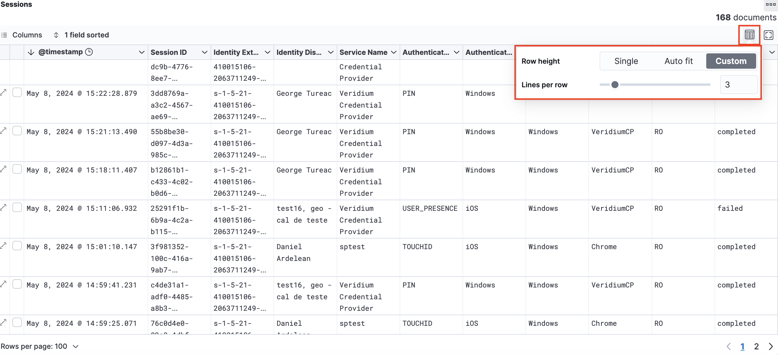 The user can add an in or out filter on any column from the table using the buttons near the column’s value