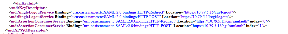 Depending on the configuration, the exported metadata might contain ip addresses instead of fqdns’s for SingleLogoutService and AssertionConsumerService: