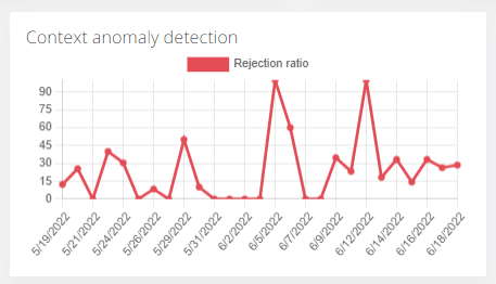 Context anomaly detection shows percentage of rejected requests from UBA reasons in a selected time frame (by default last month)