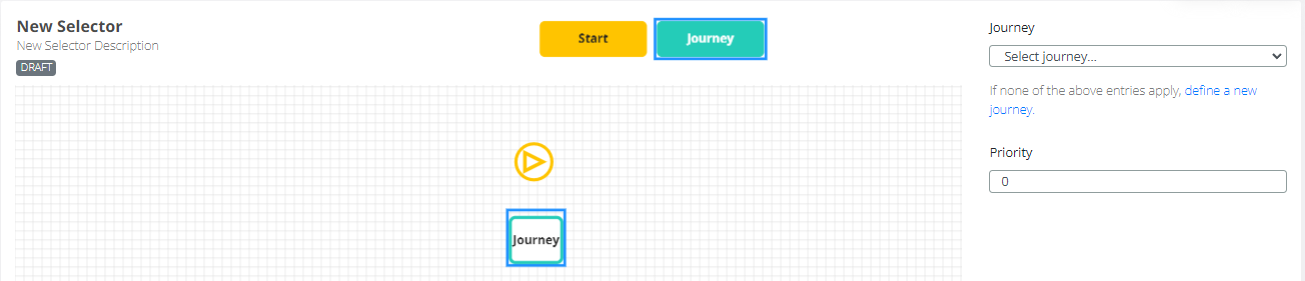 Drag and drop Journey states and configure them on the right-side element inspector. Select an existing journey from the list and assign a priority for it. At execution time, if multiple journeys are evaluated to be run based on the provided context, the journey with the highest priority value will be executed.
