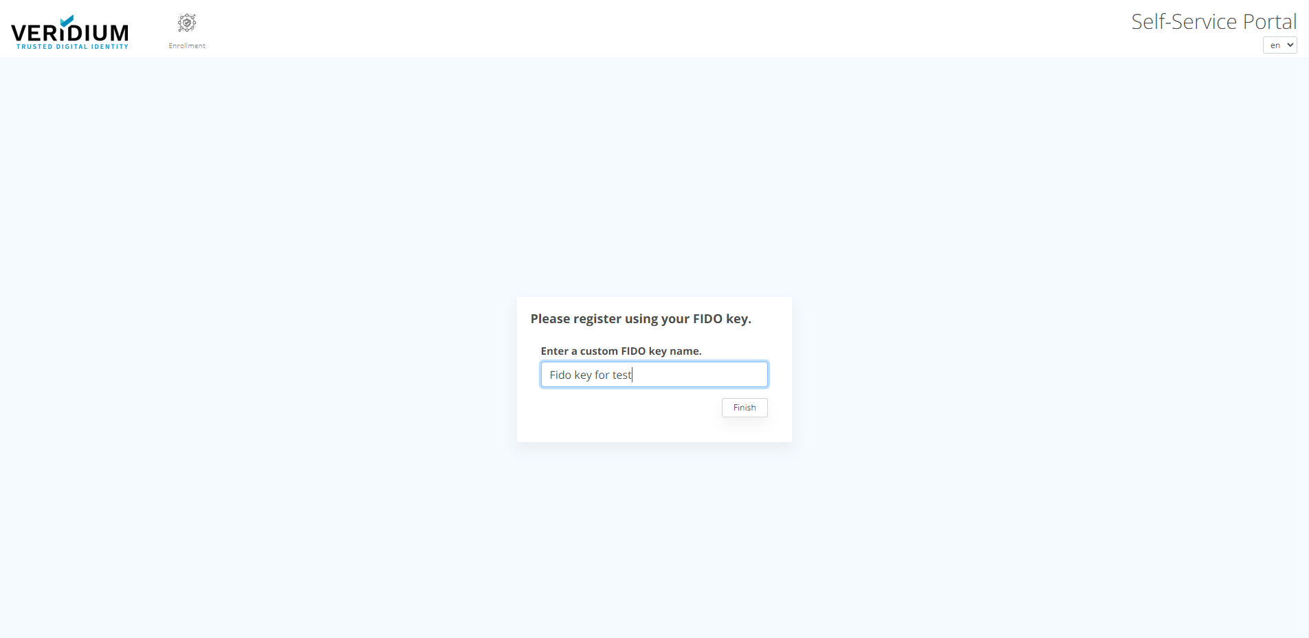 1. Go to VeridiumID Self-enrollment and click on "FIDO".