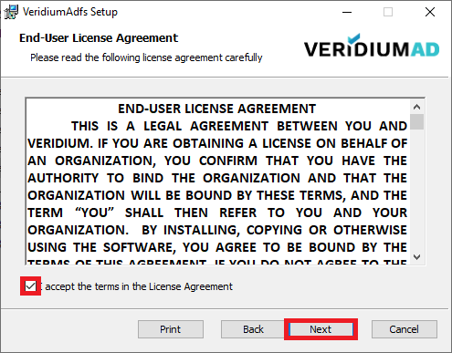 Start VeridiumAdfsInstaller-x.x.x.x.msi.