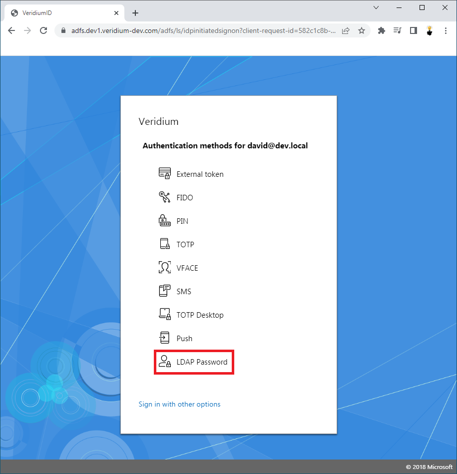 2. Select VeridiumID authentication option and click on it.