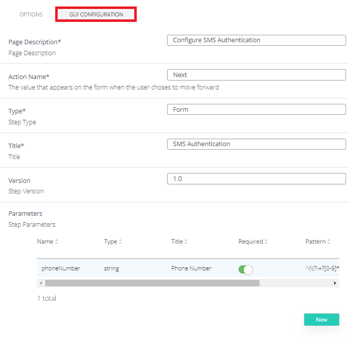 Options tab. OTP Validity: default value is 300s. Time of SMS code validity in seconds.