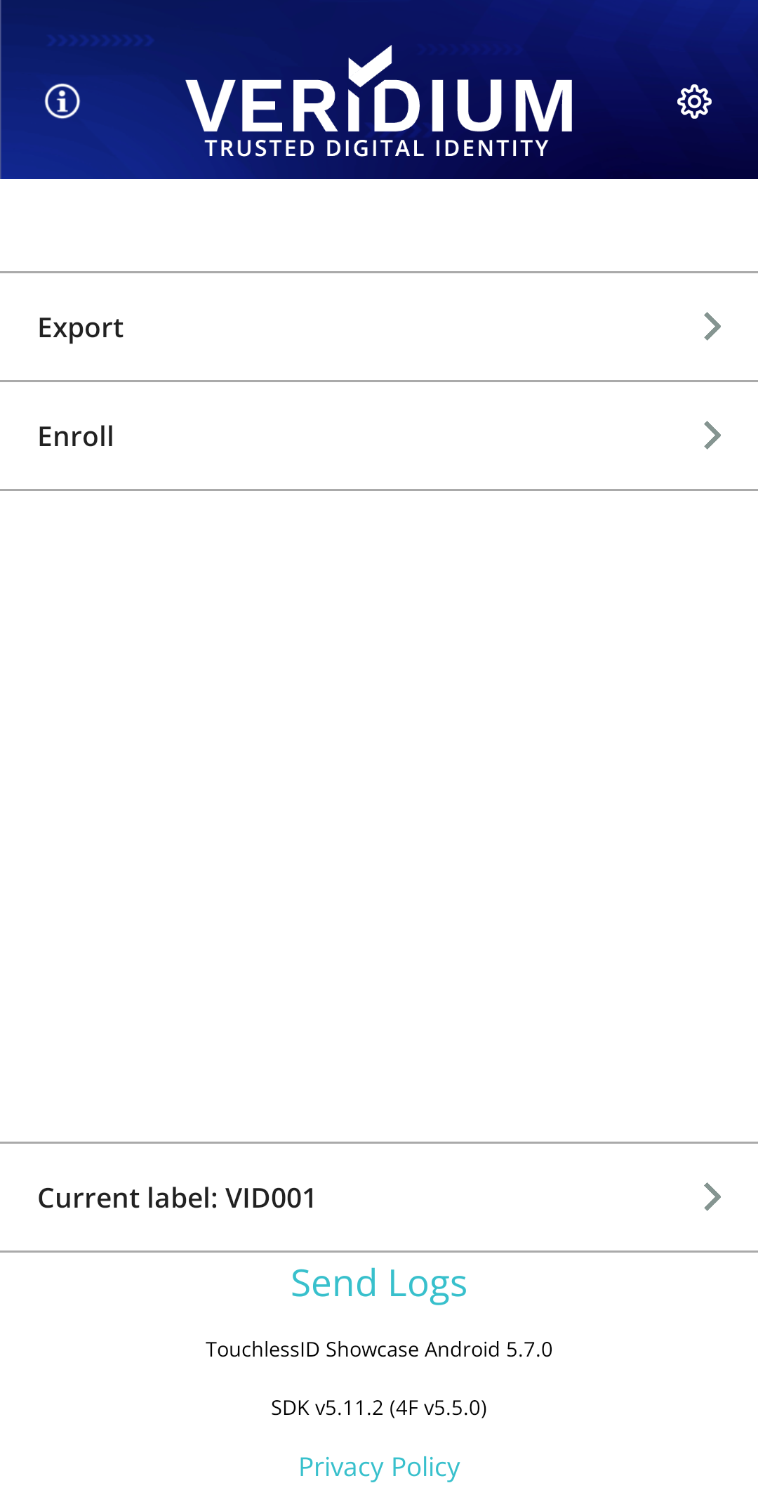 By using the App, you are agreeing to the terms as stated in the Privacy Policy and Veridium web site, and are responsible for abiding by local laws regarding data privacy.
