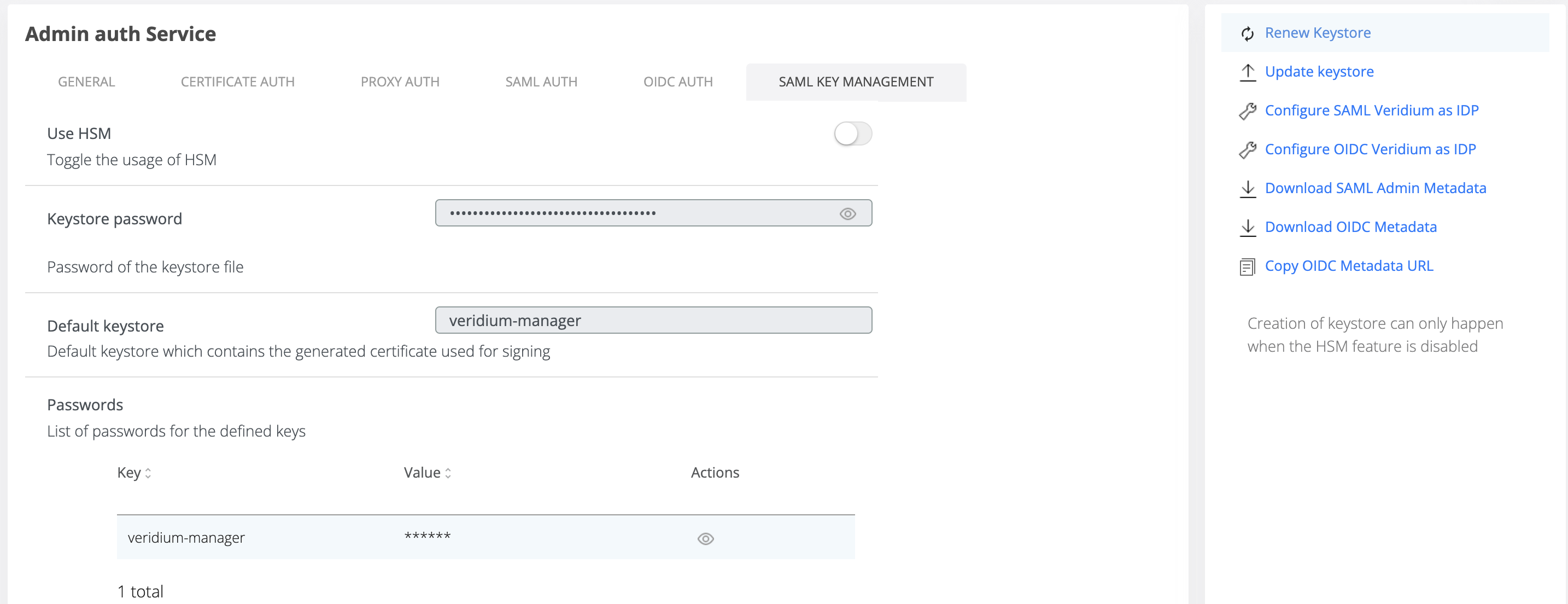 For example in the admin auth settings, we can see that the right side menu action Renew Keystore and Update Keystore are available only if the user clicks in SAML key management tab.