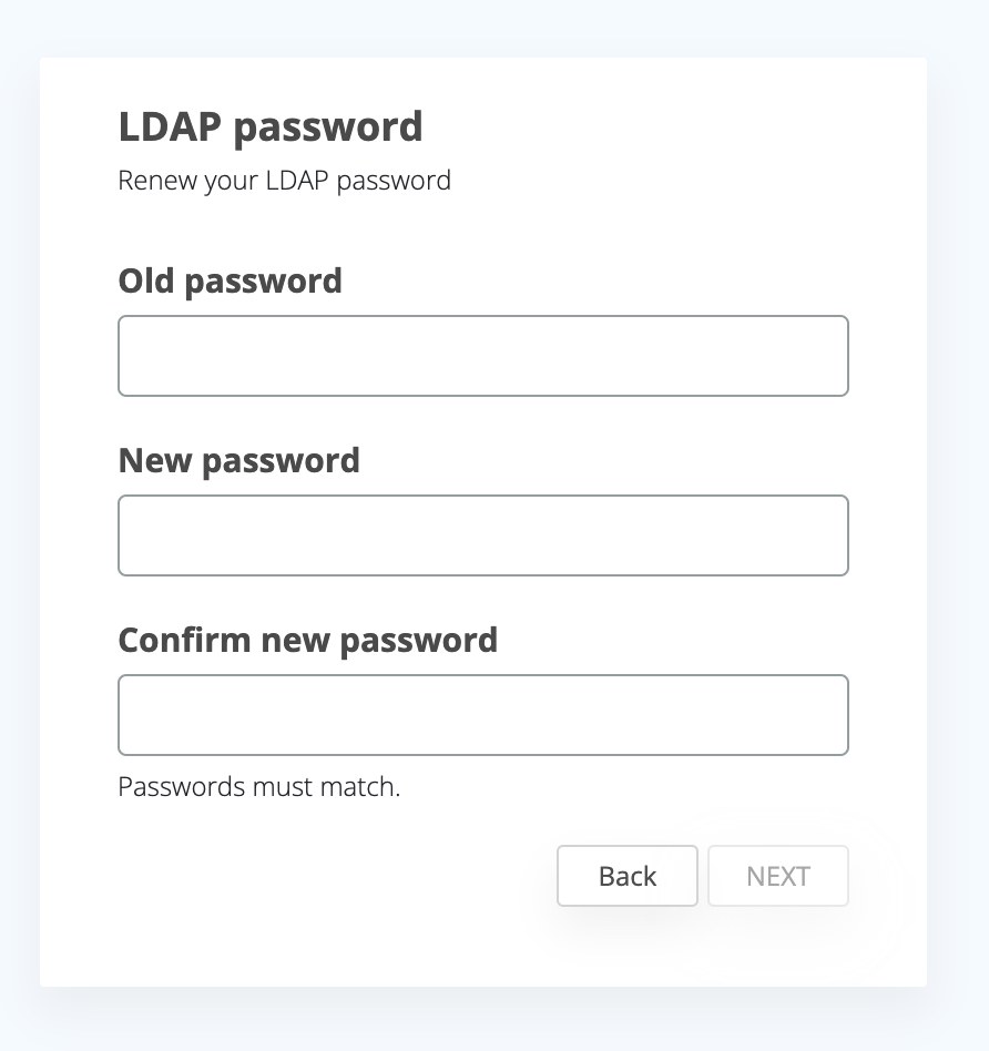 As I said above, the flow of resetting the LDAP password will be the same as in the case of resetting the PIN. The user will have to follow security steps to be able to reset the LDAP password (this includes code validation)