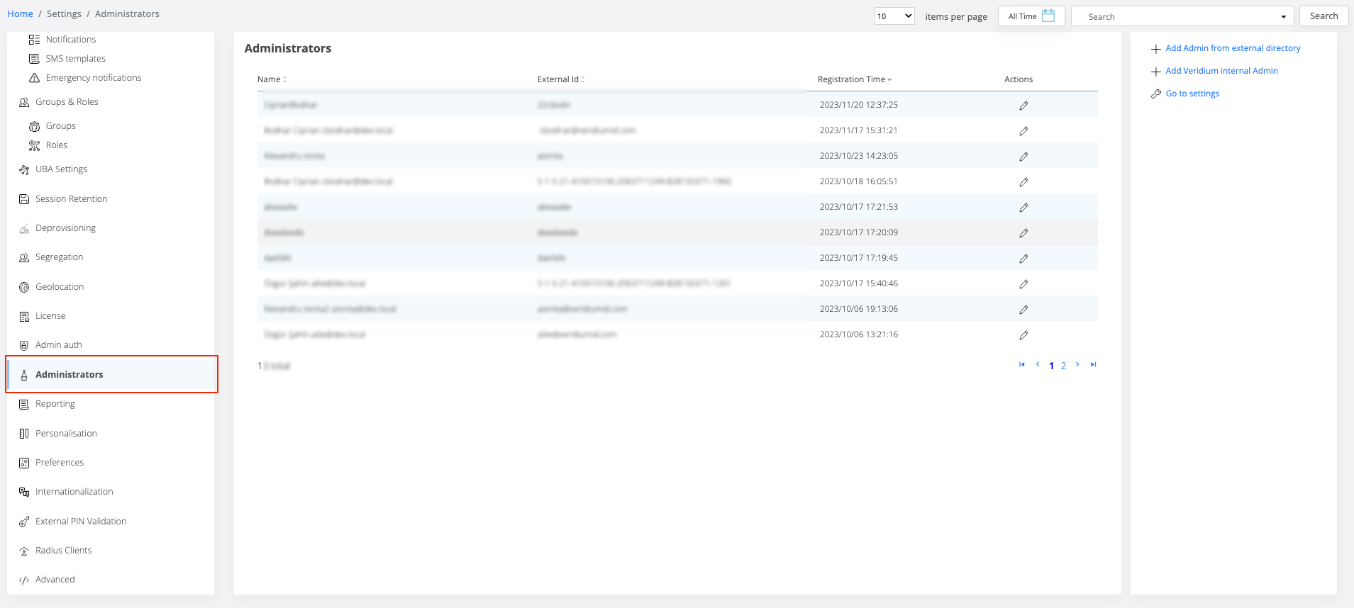 New configuration options are available in Veridium Manager - General - Administrators Settings submenu settings: