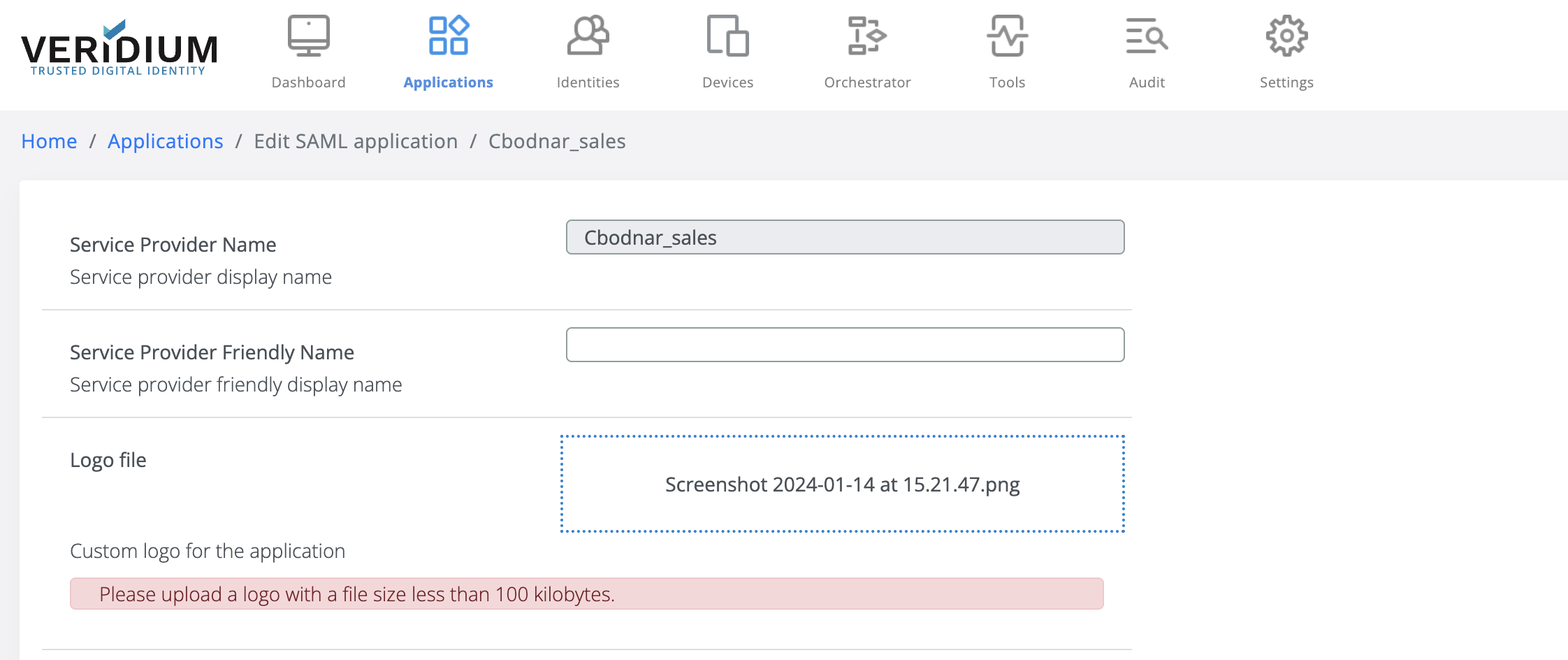 Introducing this new field for applications may lead to a conflict with SSP logo uploads. In such instances, any upload action within SSP, whether through the SSP settings page, personalization page or the application setting page, will result in modifying the image in both JSON files (ssp.json and service-provider.json).