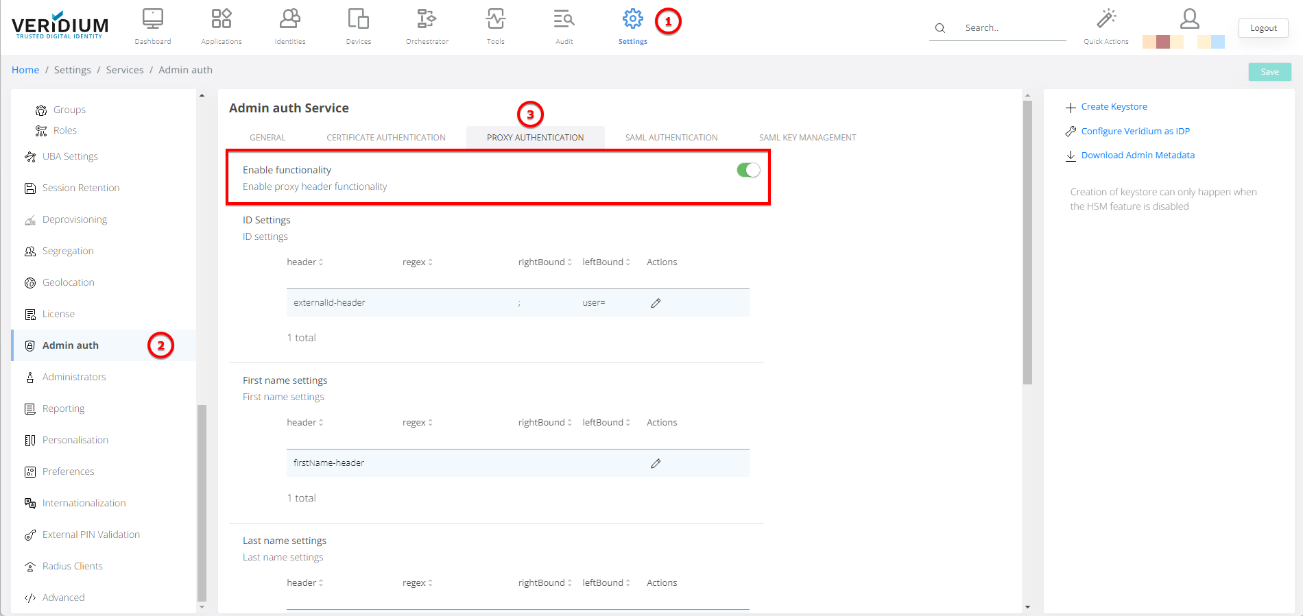 By default, this mechanism is disabled upon initialization, but can be enabled and configured by going to Veridium Manager / Settings / Admin Auth and by checking the following configuration: