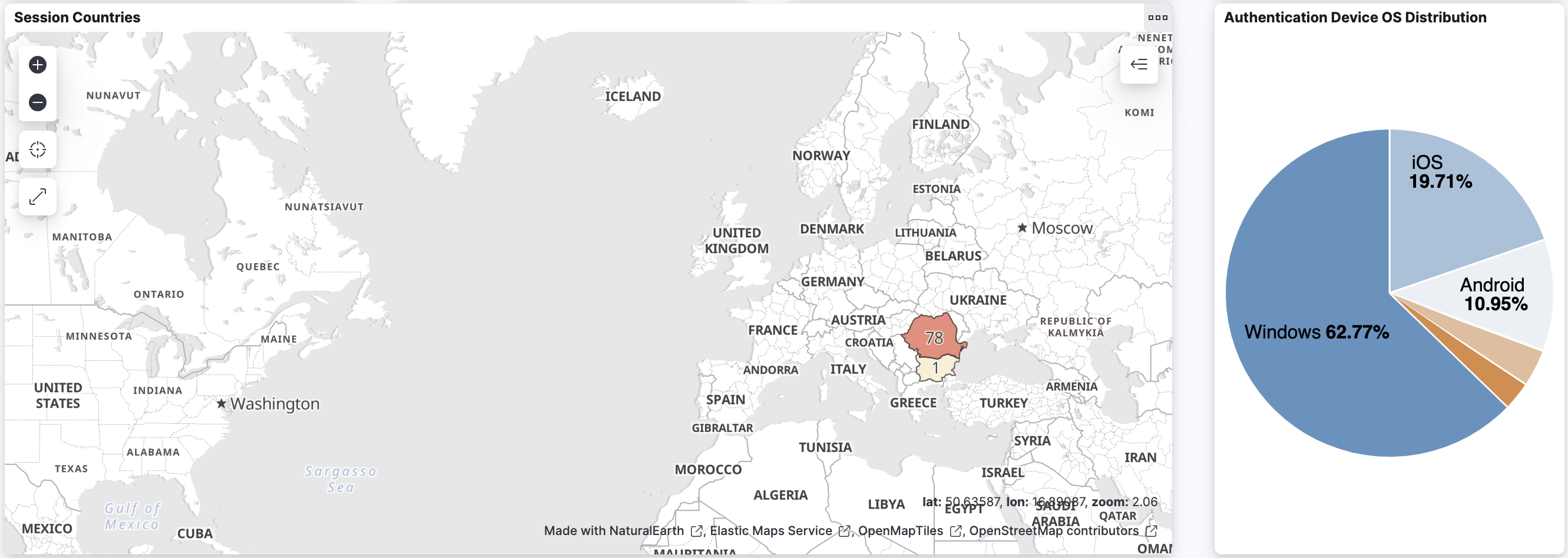 The Authentication Device OS Distribution is a pie chart which provides an overview of how many sessions were created using each authentication device operating system.