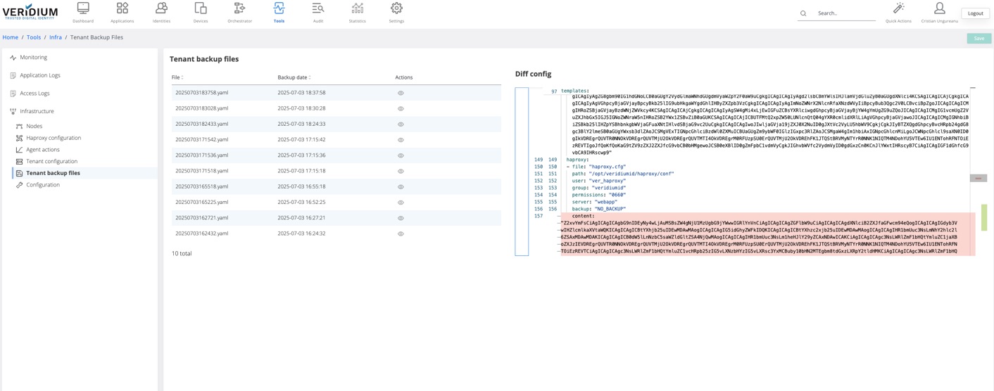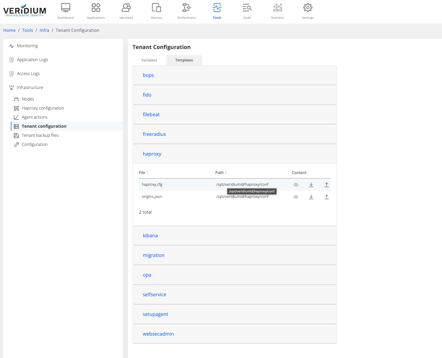In Veridium manager, navigate to Tools → Haproxy configuration